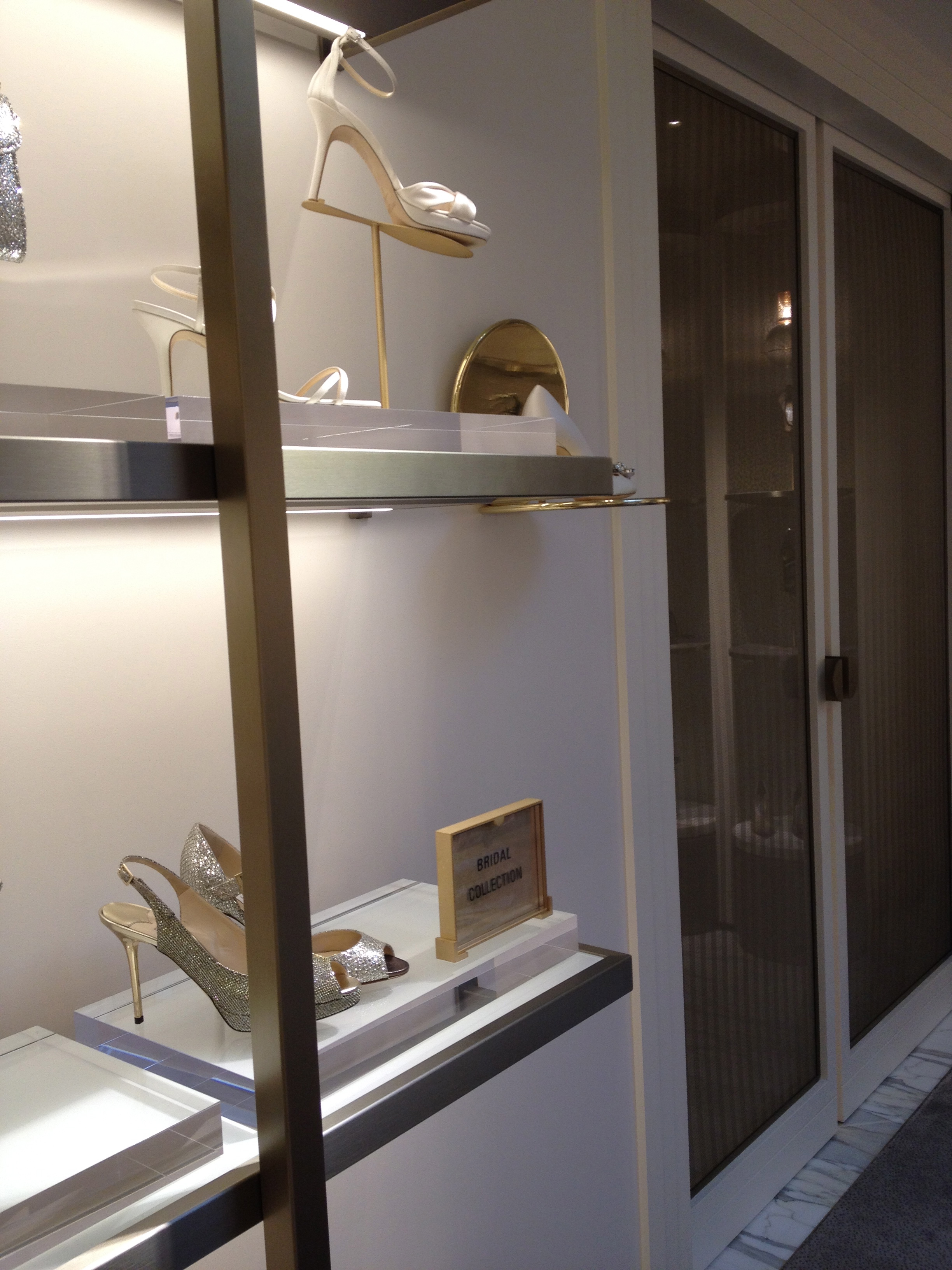 IMG_5170All’ingresso trovo ad accogliermi il personale sorridente e soprattutto preparato, che mi spiega come si articola il nuovo negozio: 3 piani suddivisi per categoria di accessori in cui perdersi ad ammirare i dettagli delle scarpe e delle borse esposte. Nel piano inferiore è presente anche un espositore con diverse tipologie di pellame in diversi colori tra cui il cliente può scegliere per avere un sandalo Jimmy Choo completamente personalizzato!